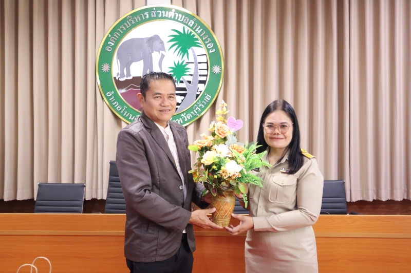 นายสันติ นาวีสัมพันธ์ นายกองค์การบริหารส่วนตำบลลำนางรอง มอบหมายให้นายสำรวย พ่วงแพ รองนายกองค์การบริหารส่วนตำบลลำนางรอง พร้อมด้วยคณะผู้บริหาร หัวหน้าส่วนราชการ ร่วมให้การต้อนรับ นางสาวจิราภรณ์ สารศรี ปลัดองค์การบริหารส่วนตำบล ซึ่งจะปฏิบัติหน้าที่เป็นปลัดองค์การบริหารส่วนตำบลลำนางรอง