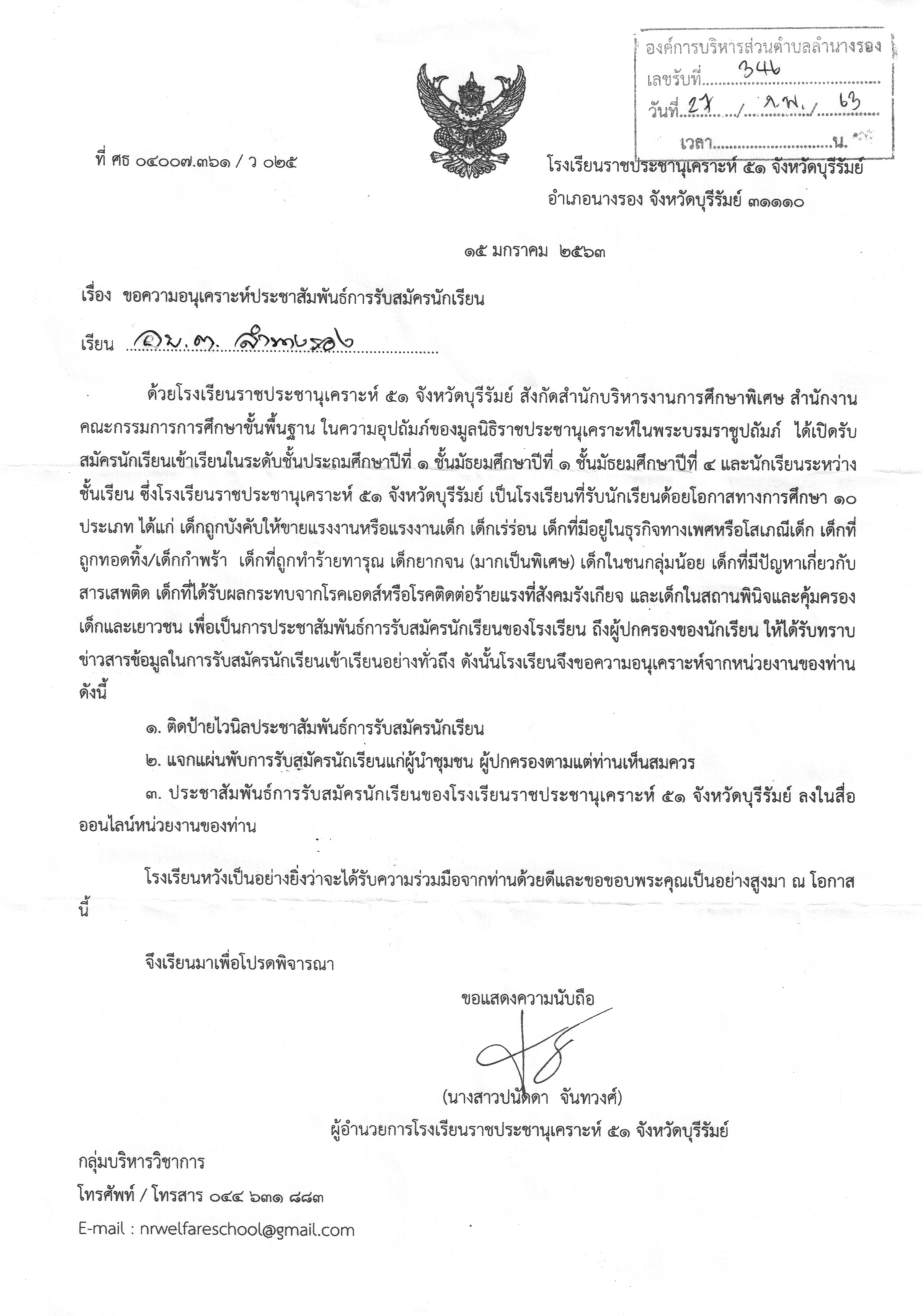 | 242 | โรงเรียนราชประชานุเคราะห์ 51 จังหวัดบุรีรัมย์ "เปิดรับสมัครนักเรียนเข้าศึกษาต่อ" ปีการศึกษา 2563 |  | 27 ก.พ. 2563 | 114 |
