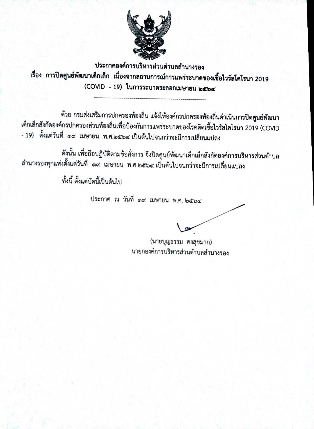 | 239 | ประชาสัมพันธ์ เลื่อนการจำหน่ายสินค้าธงฟ้าราคาประหยัด ณ บริเวณสนามหน้า องค์การบริหารส่วนตำบลลำนางรอง วันที่ 12 มี.ค.2563 ออกไปอย่างไม่มีกำหนด |  | 9 มี.ค. 2563 | 69 |