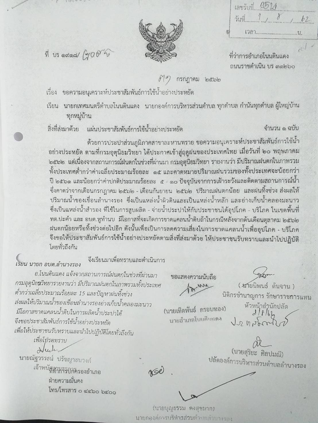 | 275 | การประปาส่วนภูมิภาคสาขาละหานทราย ขอความอนุเคราะห์ประชาสัมพันธ์การใช้น้ำอย่างประหยัด เพื่อลดความเสี่ยงในการขาดแคลนน้ำเพื่อุปโภค-บริโภค |  | 6 ส.ค. 2562 | 1,904 |