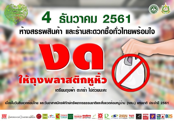 | 322 | 4 ธ.ค. วันสิ่งแวดล้อมไทย “ห้างสรรพสินค้า-ร้านสะดวกซื้อ” งดบริการถุงพลาสติกทั่วไทย |  | 4 ธ.ค. 2561 | 102 |