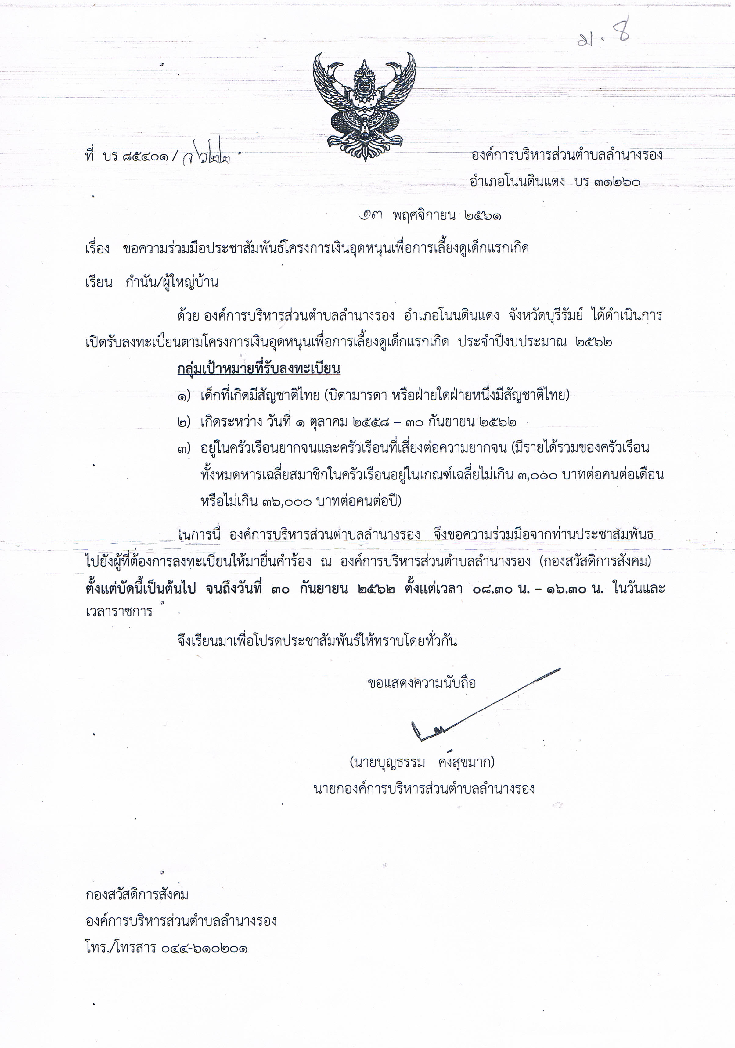 | 257 | กองทุนสวัสดิการชุมชนตำบลลำนางรอง(สัจจะวันละ 1 บาท) เปิดรับสมัครสมาชิกรายใหม่ ครั้งที่ 1/2563 |  | 26 ธ.ค. 2562 | 87 |