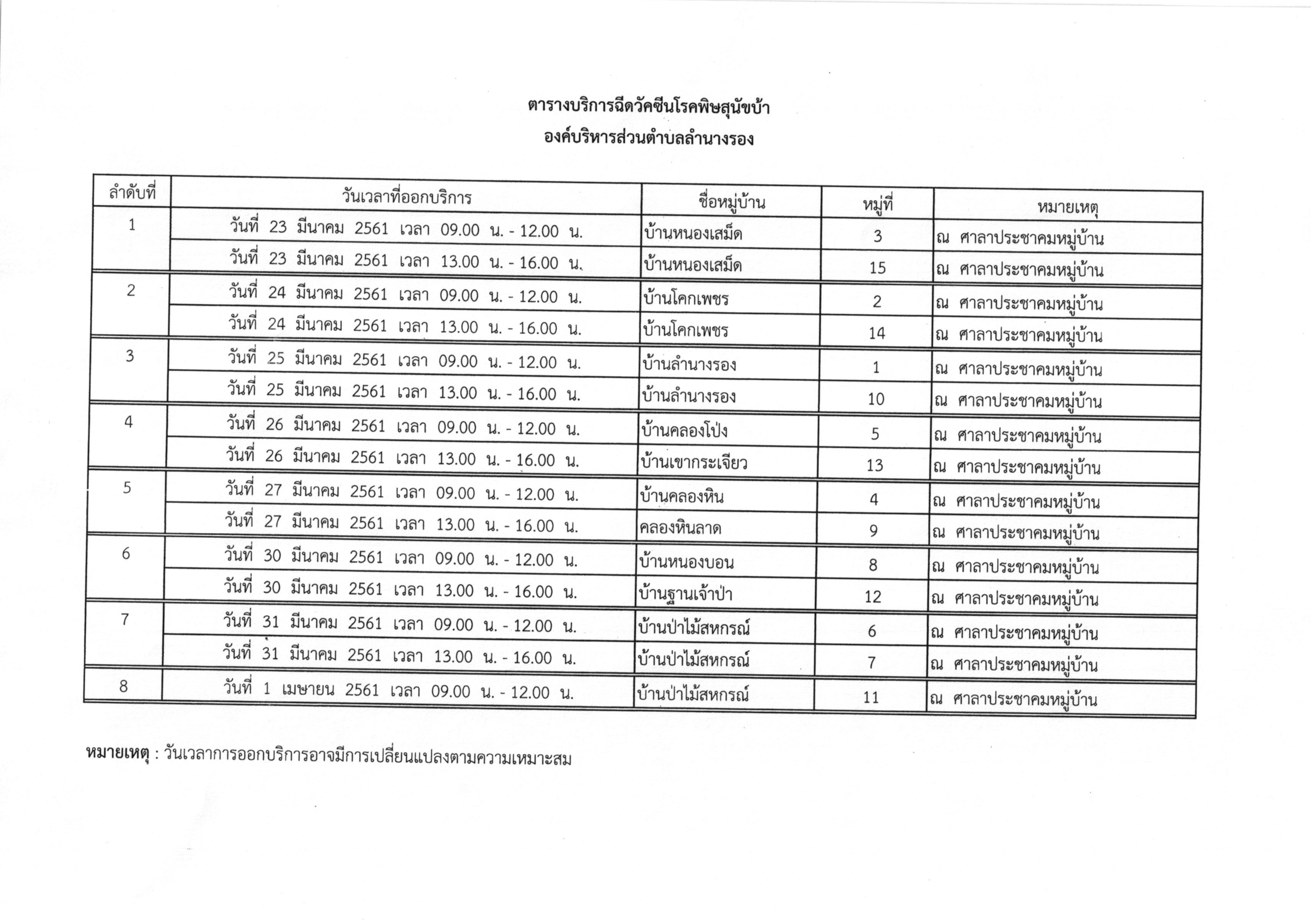 | 236 | ตารางการออกให้บริการฉีดวัคซีนป้องกันโรคพิษสุนัขบ้า ประจำปีงบประมาณ 2563 |  | 20 มี.ค. 2563 | 76 |