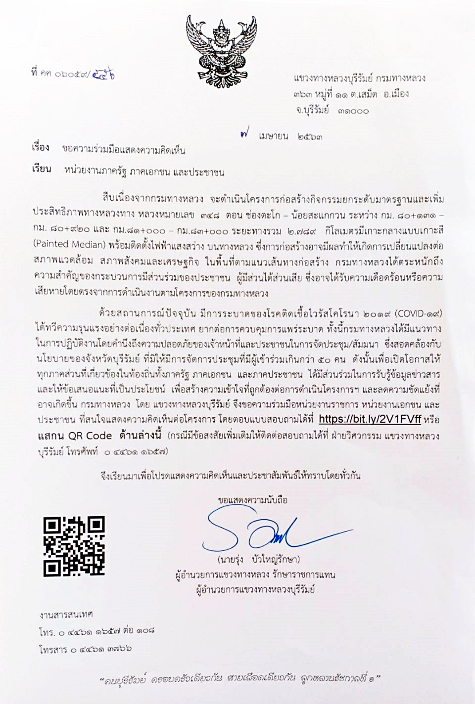 | 91 | ขอความอนุเคราะห์ประชาสัมพันธ์ให้ผู้ใช้เส้นทางเพิ่มความระมัดระวังฯ |  | 29 มิ.ย. 2565 | 126 |