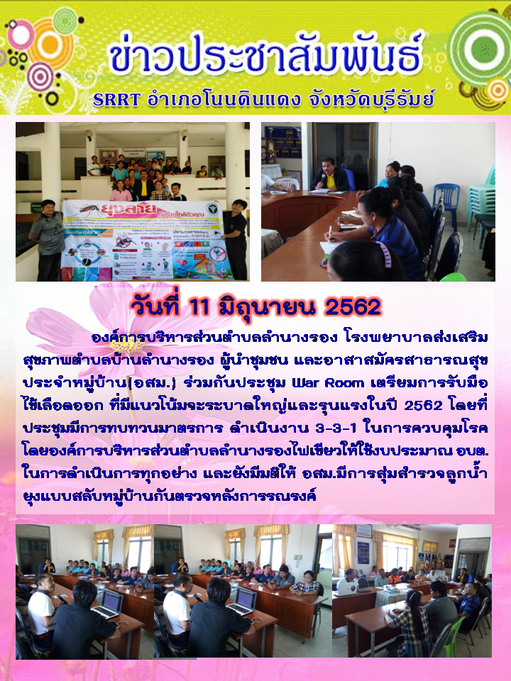 | 283 | ข่าว ปชส.SRRT ลำนางรอง เรื่อง การประชุมรับมือไข้เลือดออก 2562 |  | 12 มิ.ย. 2562 | 66 |