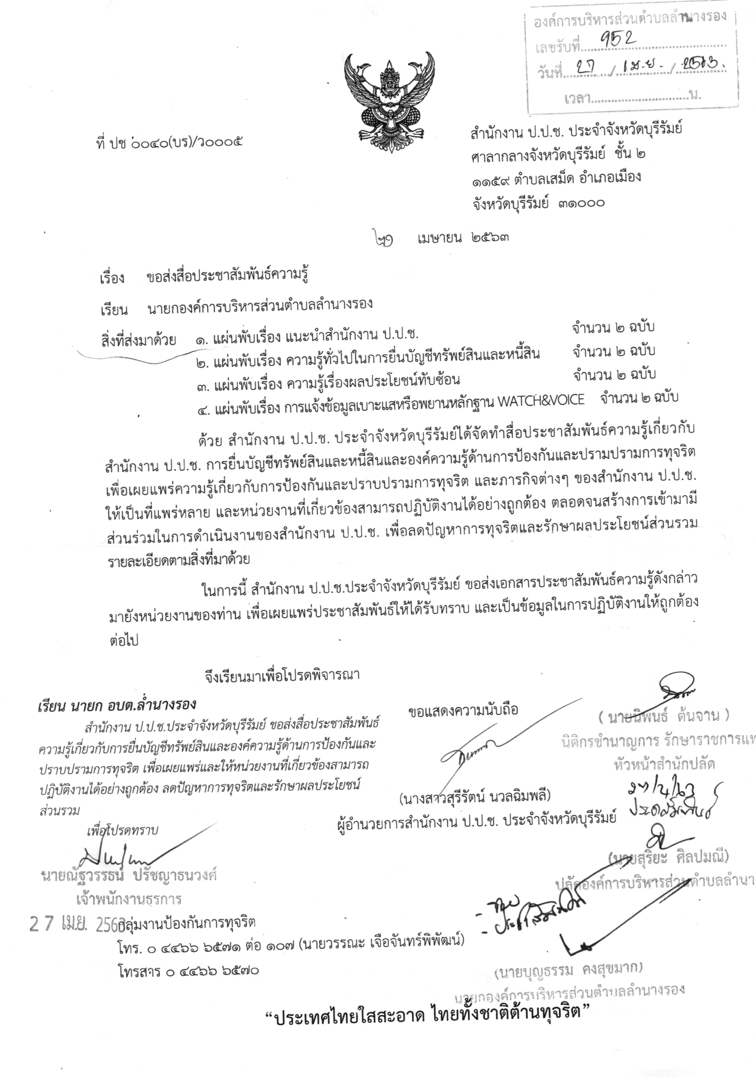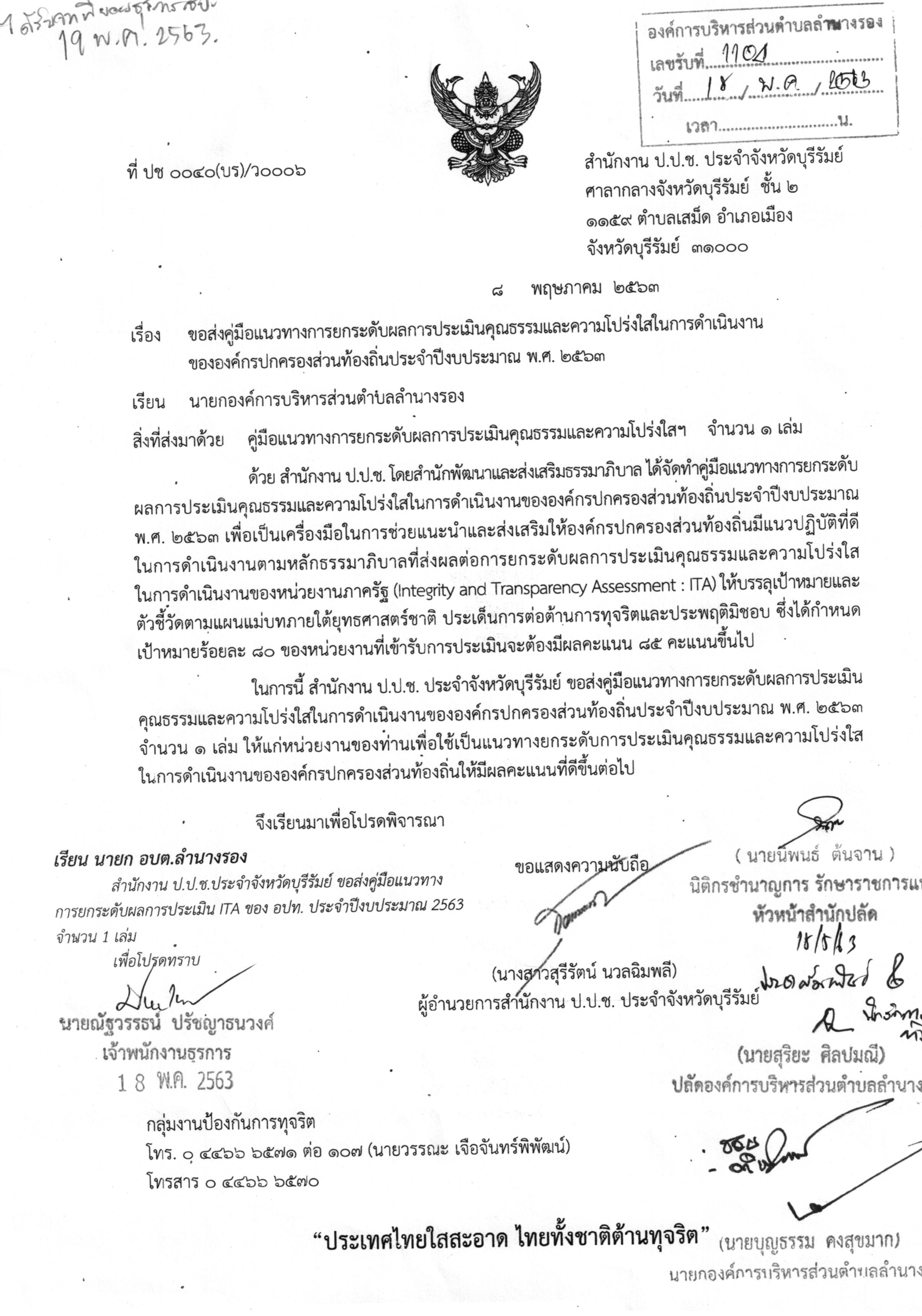 | 232 | แผนปฏิบัติการจัดการขยะมูลฝอยชุมชน“จังหวัดสะอาด”จังหวัดบุรีรัมย์ ประจาปีพ.ศ. 2563 |  | 8 เม.ย. 2563 | 86 |