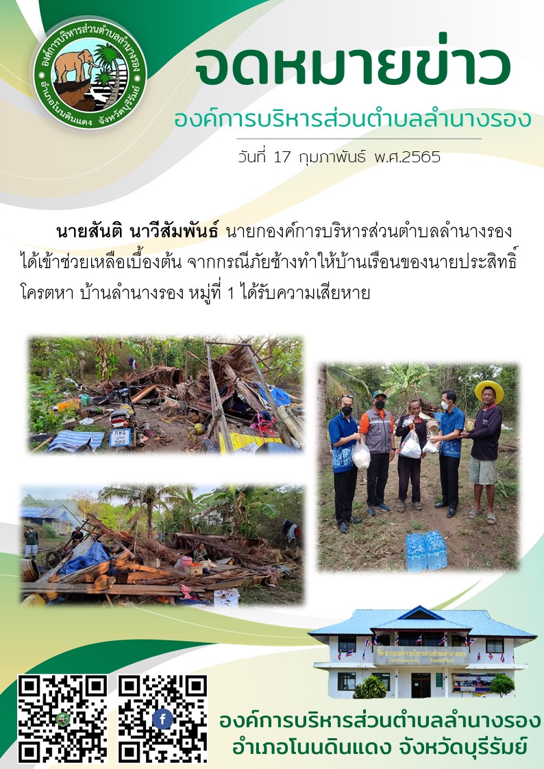 | 100 | ช่วยเหลือภัยช้างป่า อบต.ลำนางรอง |  | 17 ก.พ. 2565 | 106 |