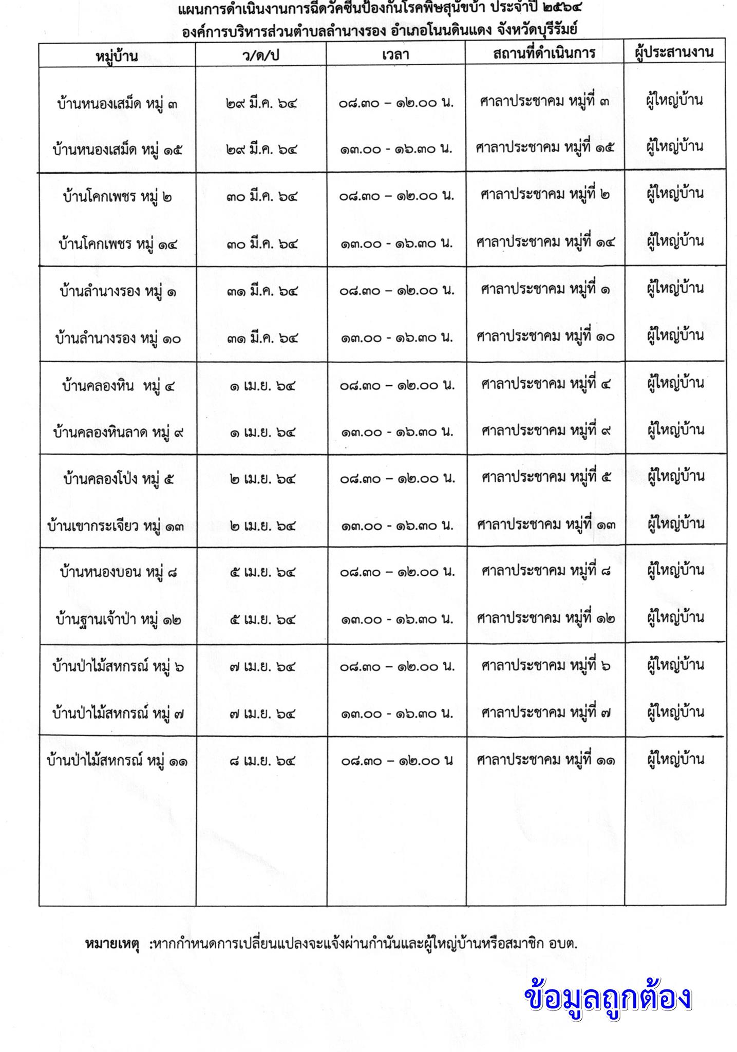 | 236 | ตารางการออกให้บริการฉีดวัคซีนป้องกันโรคพิษสุนัขบ้า ประจำปีงบประมาณ 2563 |  | 20 มี.ค. 2563 | 76 |
