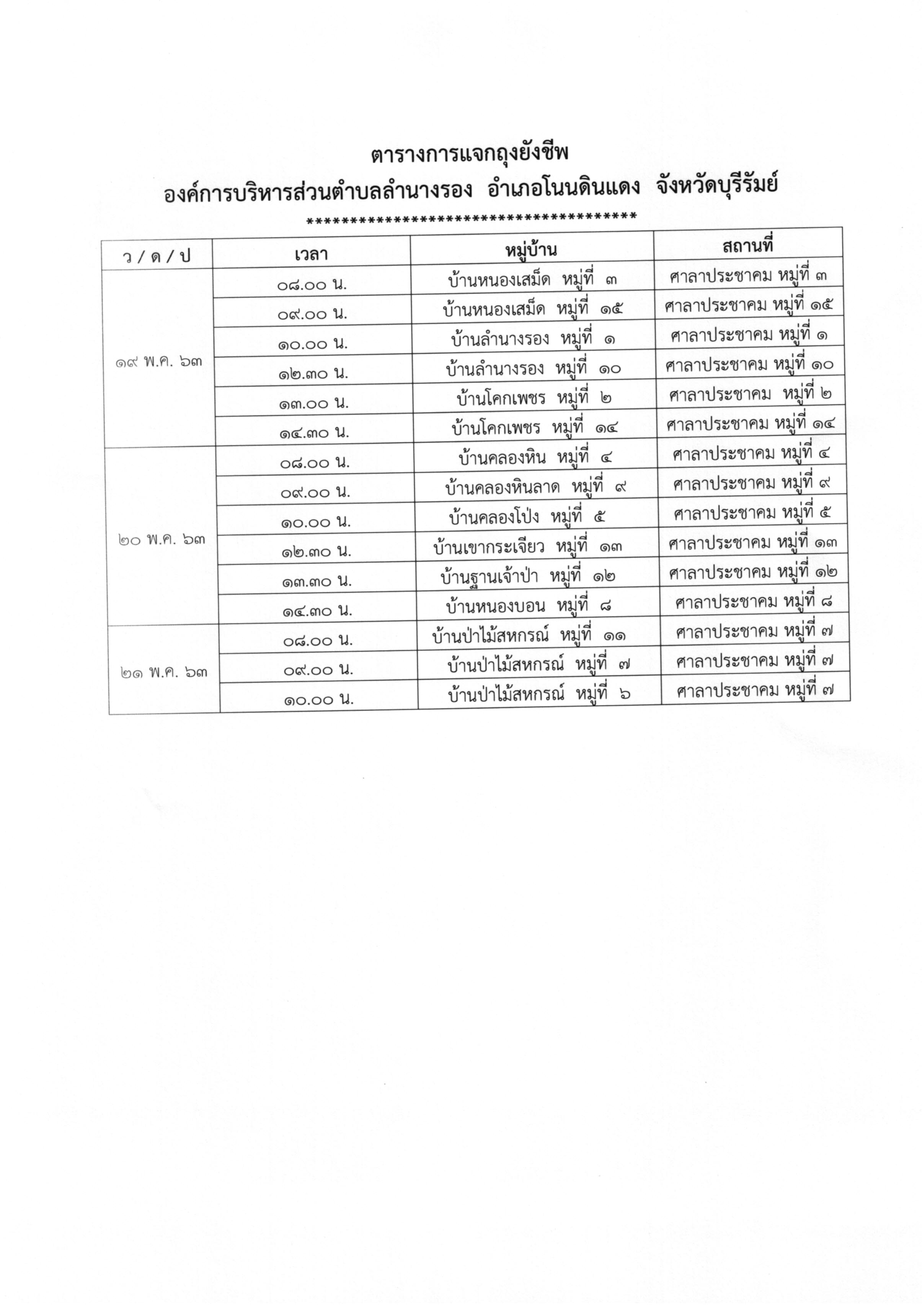 | 256 | ข่าวประชาสัมพันธ์ จากกองสวัสดิการสังคม อบต.ลำนางรอง เรื่อง ตารางการลงพื้นที่เพื่อรับลงทะเบียนผู้มีสิทธิ์รับเบี้ยยังชีพผู้สูงอายุและเบี้ยยังชีพความพิการ ตามโครงการบูรณาการฐานข้อมูลสวัสดิการสังคม (e-Payment) (รายละเอียดปรากฏตามไฟล์ภาพเอกสารที่ส่งมาด้วยค่ะ) |  | 9 ม.ค. 2563 | 342 |