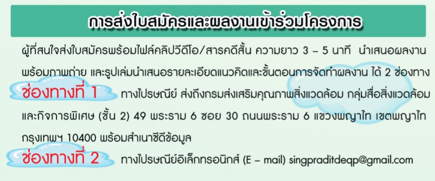 | 295 | สปอตประชาสัมพันธ์รณรงค์ลดการเผาในท้องถิ่น ตามโครงการส่งเสริมการหยุดเผาในพื้นที่การเกษตร ปี 2562 |  | 4 มี.ค. 2562 | 118 |