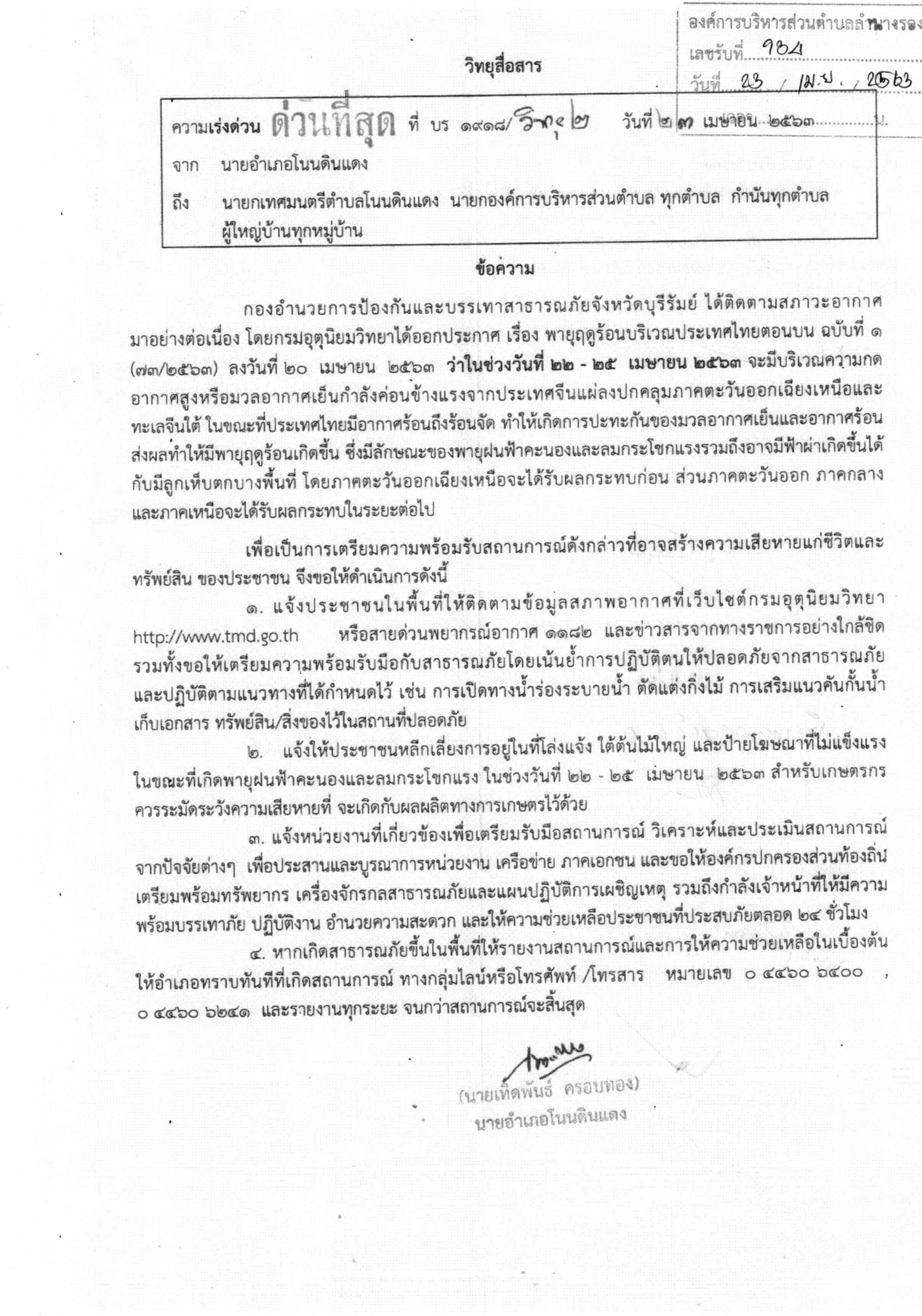 | 68 | ขอความร่วมมือประชาสัมพันธ์มาตรการเฝ้าระวังฯ |  | 28 เม.ย. 2566 | 34 |