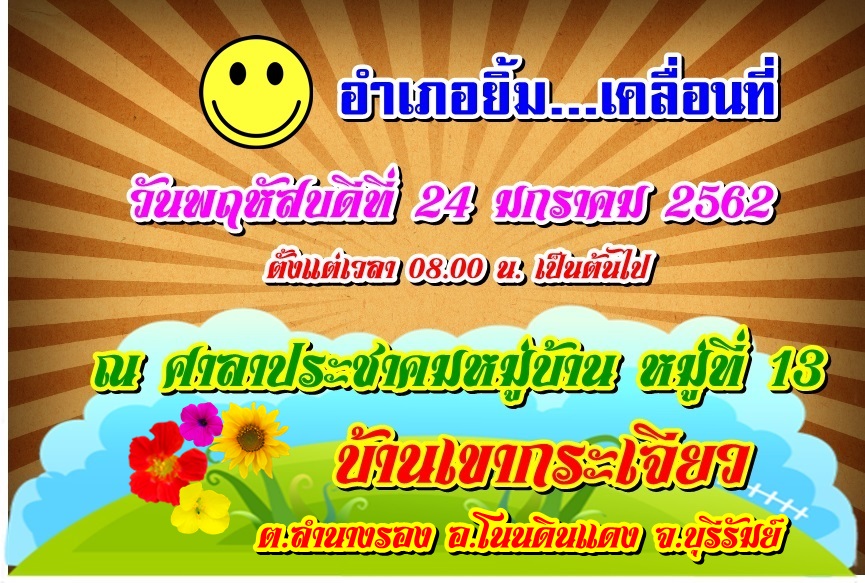 | 305 | อบต.ลำนางรอง เชิญชวนประชาชนในพื้นที่ร่วมกิจกรรม อำเภอยิ้ม...เคลื่อนที่ ประจำปี 2562 |  | 22 ม.ค. 2562 | 132 |