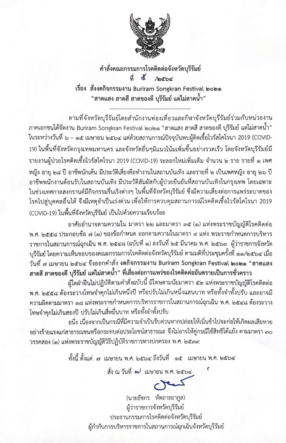 | 294 | ขอเชิญร่วมบวงสรวงพระสยามเทวาธิราช ประจำปี 2562 ณ ด่านช่องตะโก บ้านหนองเสม็ด อ.โนนดินแดง จ.บุรีรัมย์ วันที่ 16 มีนาคม 2562 |  | 15 มี.ค. 2562 | 97 |