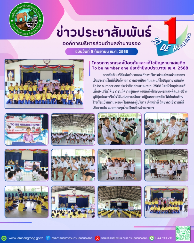 โครงการรณรงค์ป้องกันและแก้ไขปัญหายาเสพติด To be number one ประจำปีงบประมาณ พ.ศ. 2568