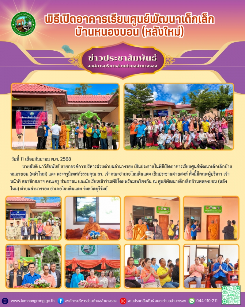 พิธีเปิดอาคารเรียนศูนย์พัฒนาเด็กเล็กบ้านหนองบอน (หลังใหม่)