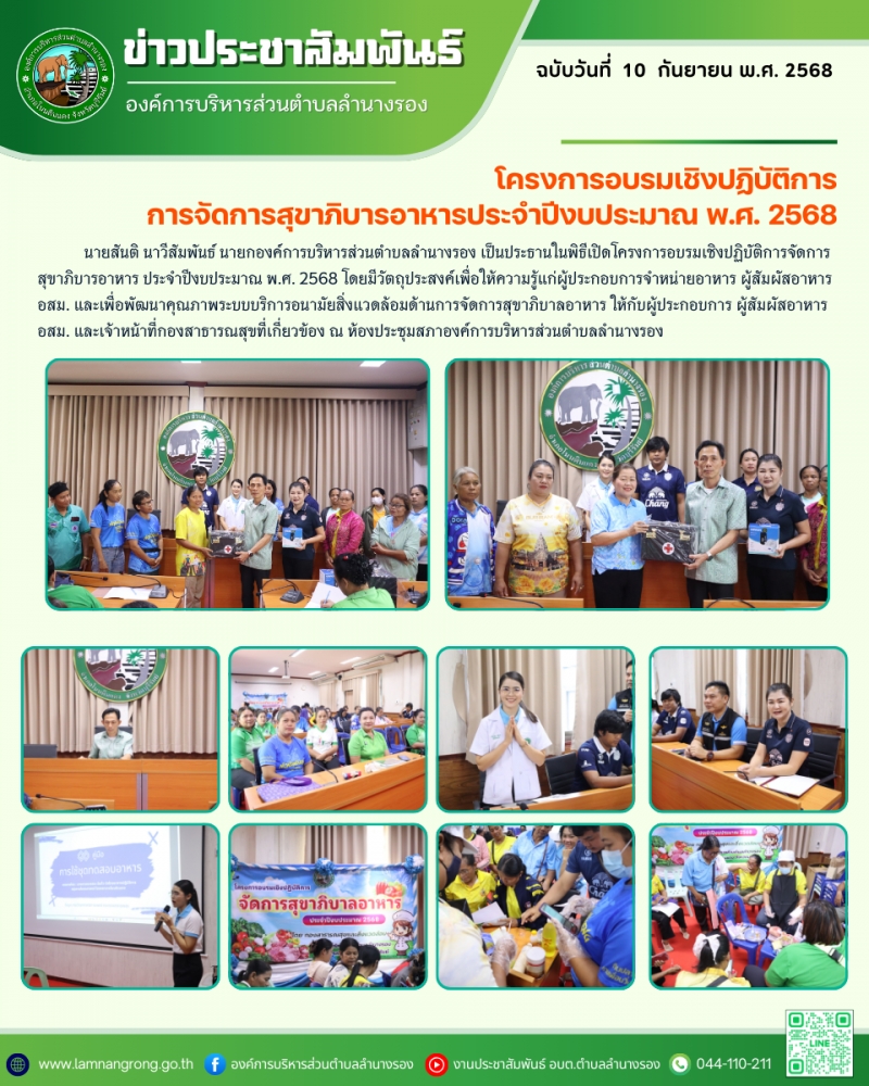 โครงการอบรมเชิงปฏิบัติการจัดการสุขาภิบารอาหาร ประจำปีงบประมาณ พ.ศ. 2568