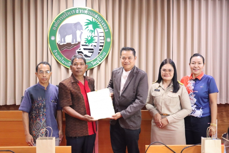 ในการนี้ นางสาวรุ้งจรัสป์ ชาติยะบุตร นายกเทศมนตรีตำบลแหลมทอง นายพิบูลย์ แสงสุระ นายกองค์การบริหารส่วนตำบลหินดาด พร้อมด้วยพนักงานเจ้าหน้าที่ และครอบครัวของปลัดองค์การบริหารส่วนตำบล ร่วมแสดงความยินดี และให้กำลังใจท่านปลัดฯ ในการดำรงตำแหน่ง ณ องค์การบริหารส่วนตำบลลำนางรอง อำเภอโนนดินแดง จังหวัดบุรีรัมย์